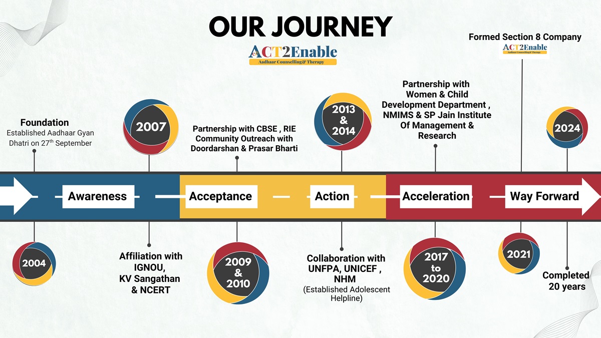 ACT2Enable (Aadhaar Counselling and Therapy) is a Section 8 social entrepreneurship initiative dedicated to making a meaningful difference in the lives of children, youth, families, and individuals. We work across two complementary domains that together define our impact.